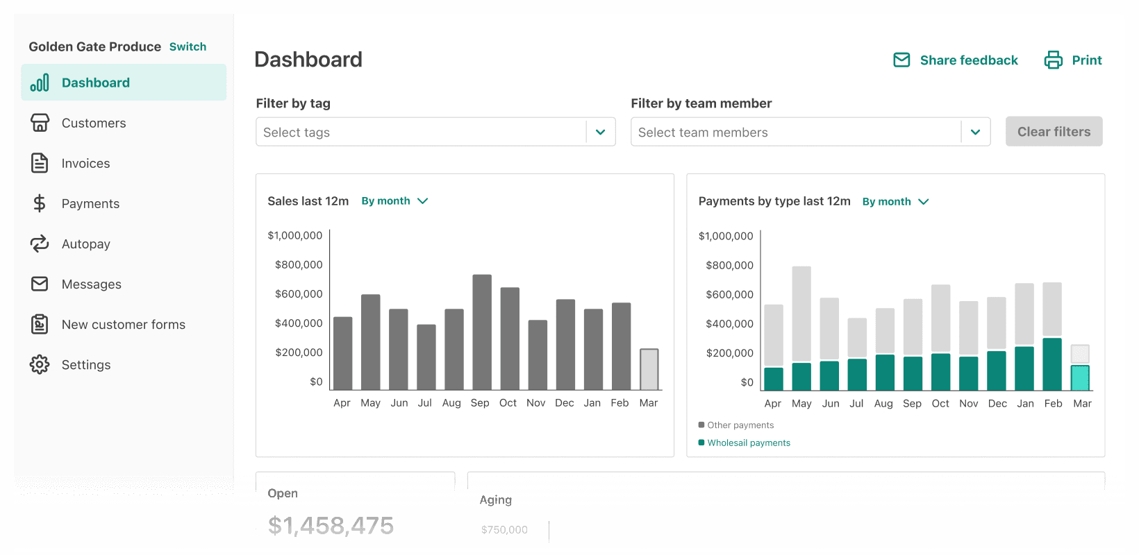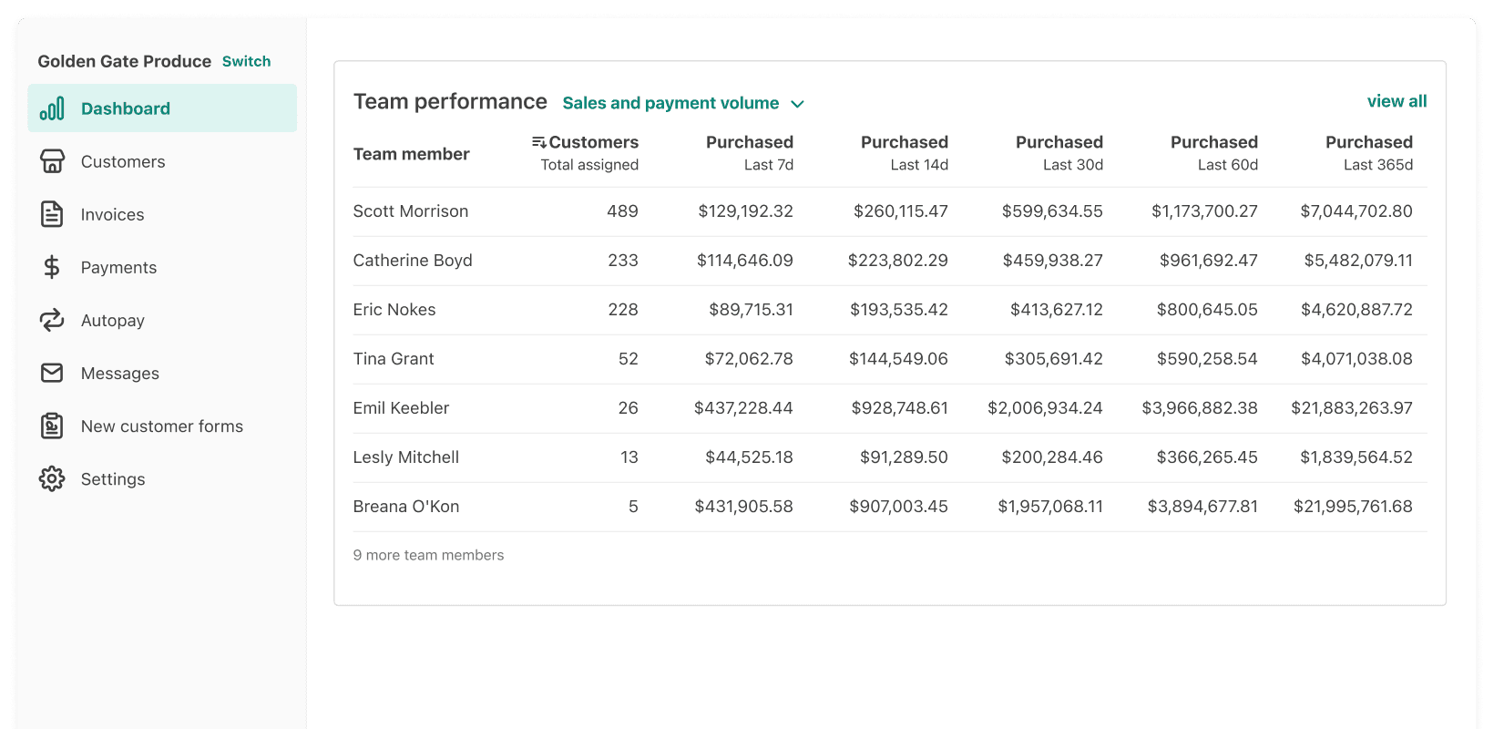 Track sales trends, team performance, and risk at a glance—then drill into the accounts behind the numbers